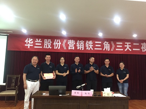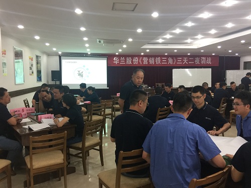 培訓(xùn)既有助于提高員工綜合素質(zhì),幫助員工出色完成本職工作,又能積極促進員工個人的職業(yè)發(fā)展,提升個人競爭力。為此,公司行政人事部和銷售部共同組織了《營銷鐵三角》三天兩夜訓(xùn)戰(zhàn)的培訓(xùn)課程,此培訓(xùn)從6月2日-6月4日共為期三天,邀請了百思特管理咨詢集團的資深講師來做培訓(xùn),華蘭股份公司董事長華國平、總經(jīng)理華一敏、銷售副總肖鋒、以及全體銷售人員參加了此次培訓(xùn)。此次《營銷鐵三角》培訓(xùn)課程,大家收獲很多,好評如潮,獲得了圓滿的成功!